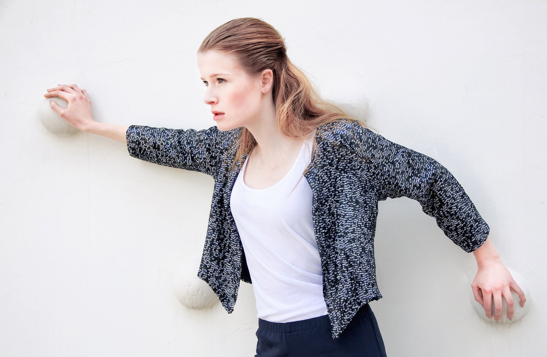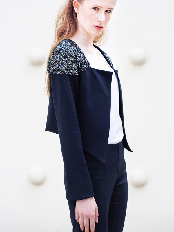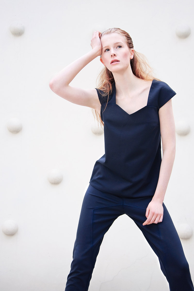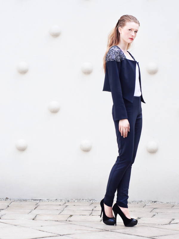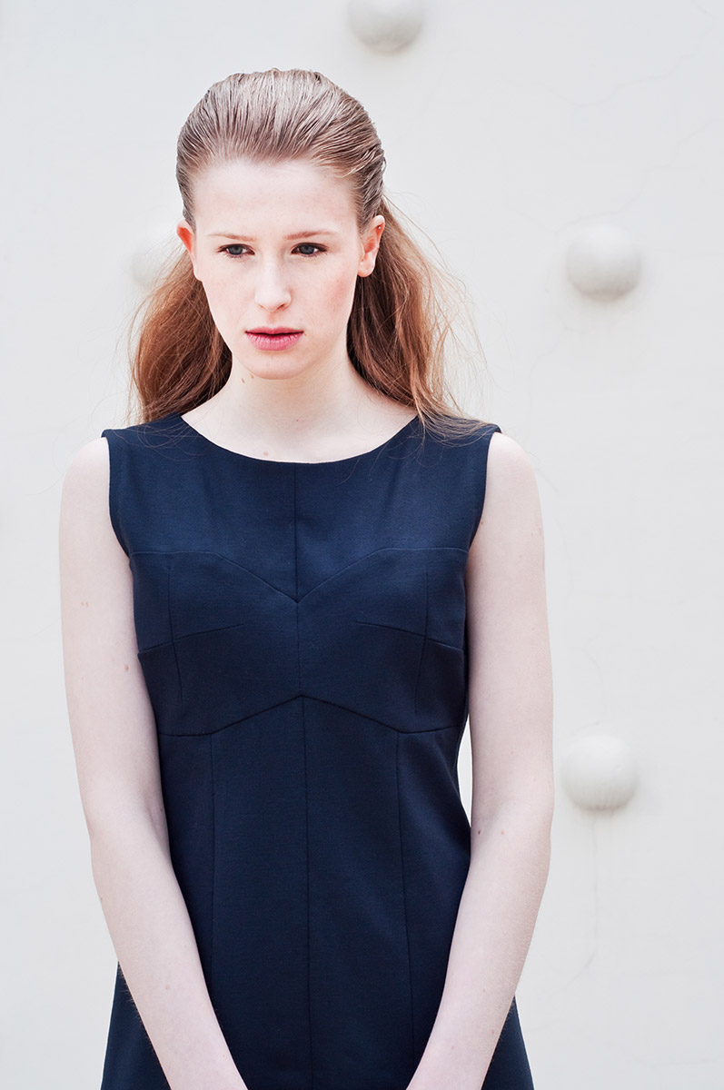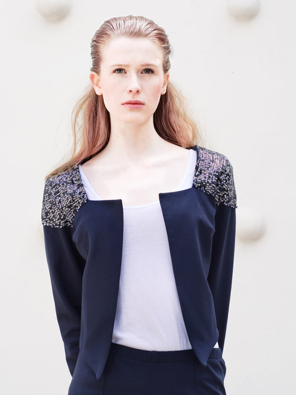 The collection is minimalist statement Moonlight white and navy blue, complemented by delicate, multicolored sequins reminiscent of the night sky full of glittering stars. Light połącznony with Italian silk wool and knitted make these clothes are both elegant and comfortable. Model: Maria Kulesza, Photographer: Magdalena Kamieniec, Mua: Ekaterina Kozlova
