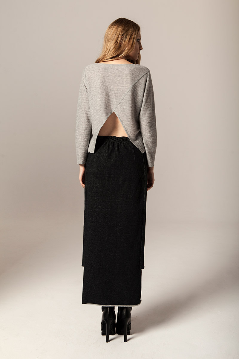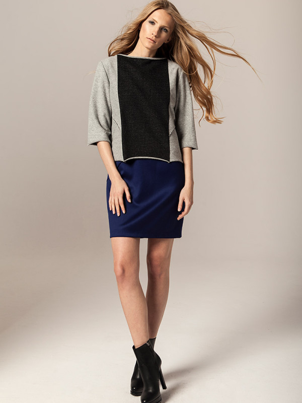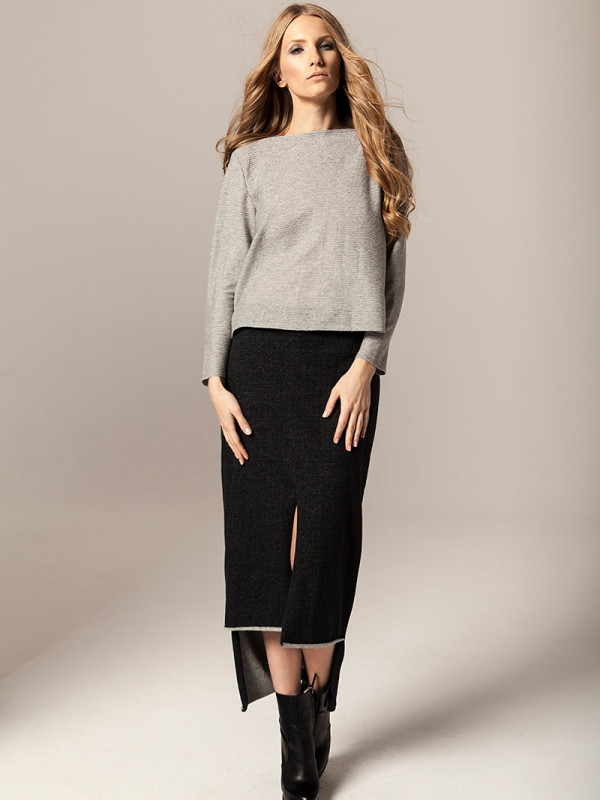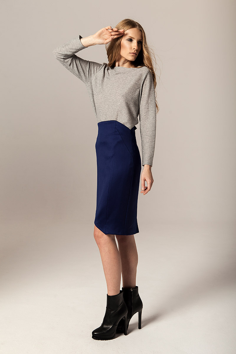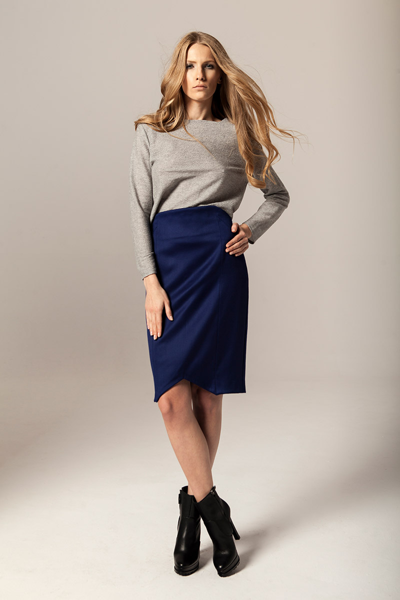 Czysty kobalt jest lśniącym, szarosrebrzystym metalem. Błękit kobaltowy, ze względu na swoją trwałość był niegdyś używany jako barwnik przy tworzeniu obrazów. Takie też mają być ubrania Joanna Jachowicz, trwałe, ponadczasowe z nutą nowoczesności. W najnowszej kolekcji pojawiają się tkaniny w odcieniach szarości oraz atramentu – barwy pierwiastka kobaltu. Komfort, piękno i elegancja oraz wysoka jakość tkanin to założenia towarzyszące tworzeniu każdej kolekcji Joanny Jachowicz. Inspiracją do powstania najnowszej kolekcji była potrzeba poszukiwania porządku i równowagi, dokładność niczym w eksperymentach chemicznych, która odzwierciedlona została w postaci symetrycznych cięć, prostych linii, wykonanych z matematyczną precyzją. Geometryczne formy są przejawem dążenia do perfekcji. Kontrastem dla tych działań są elementy kolekcji wykonane z grafitowej dzianiny, która została pozostawiona w swojej surowej formie dzięki nie wykończonym szwom. Proste kształty współgrają z kobiecym ciałem, otulają je ciepłą wełną, delikatną i wygodną dzianiną, przyciągając spojrzenia jak magnes.